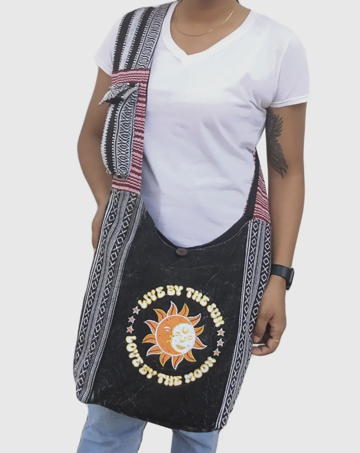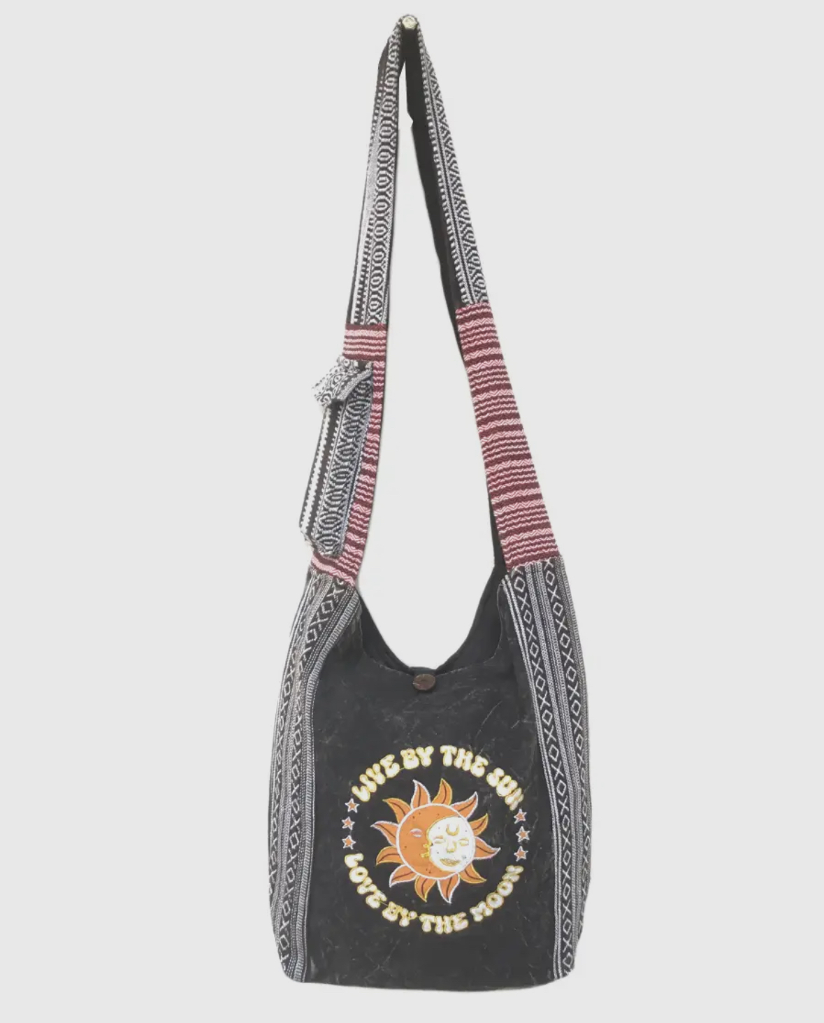 Carry the wisdom and beauty of the sun and the moon with you wherever you go with this unique hobo bag, and let its inspiring message uplift your spirits everyday.