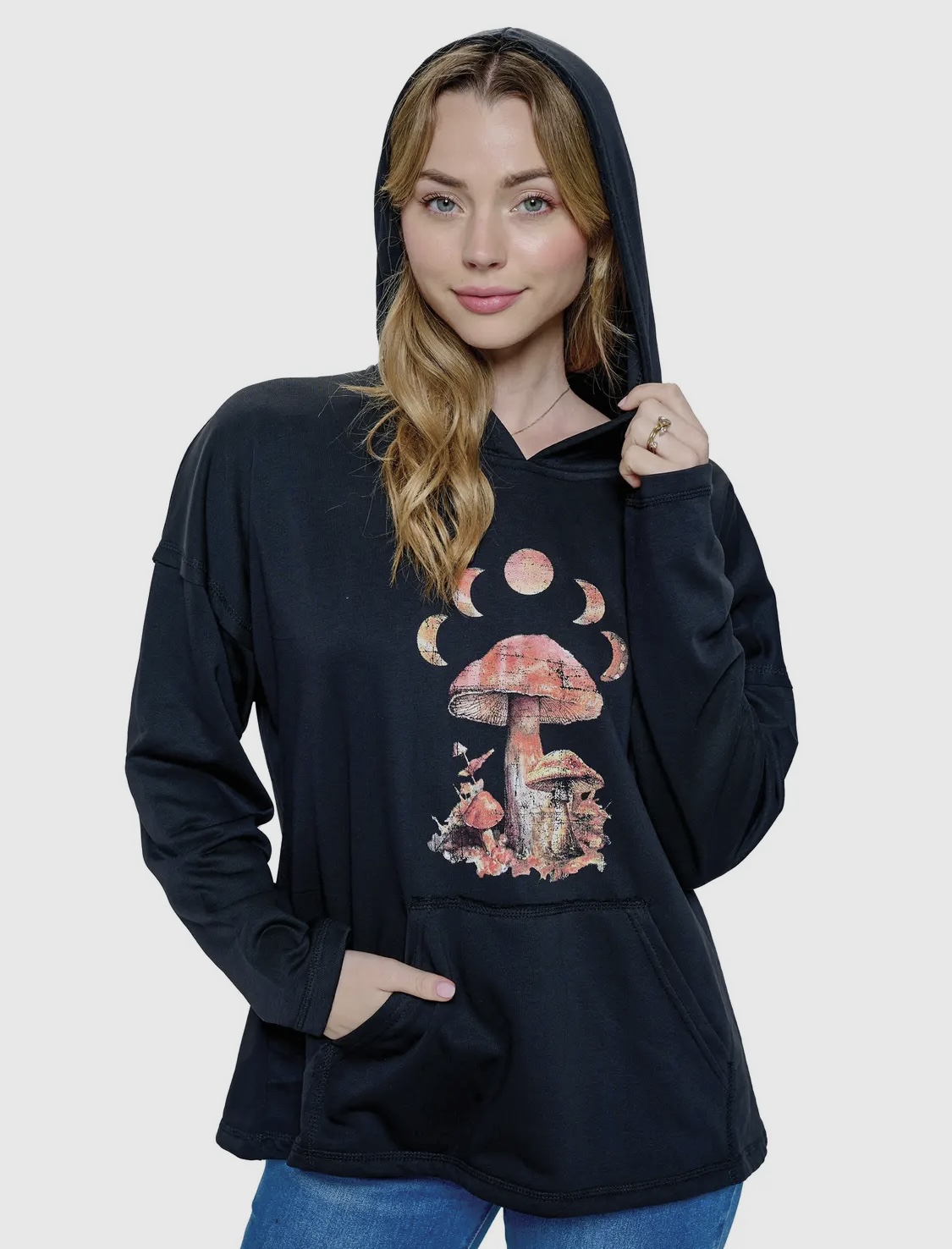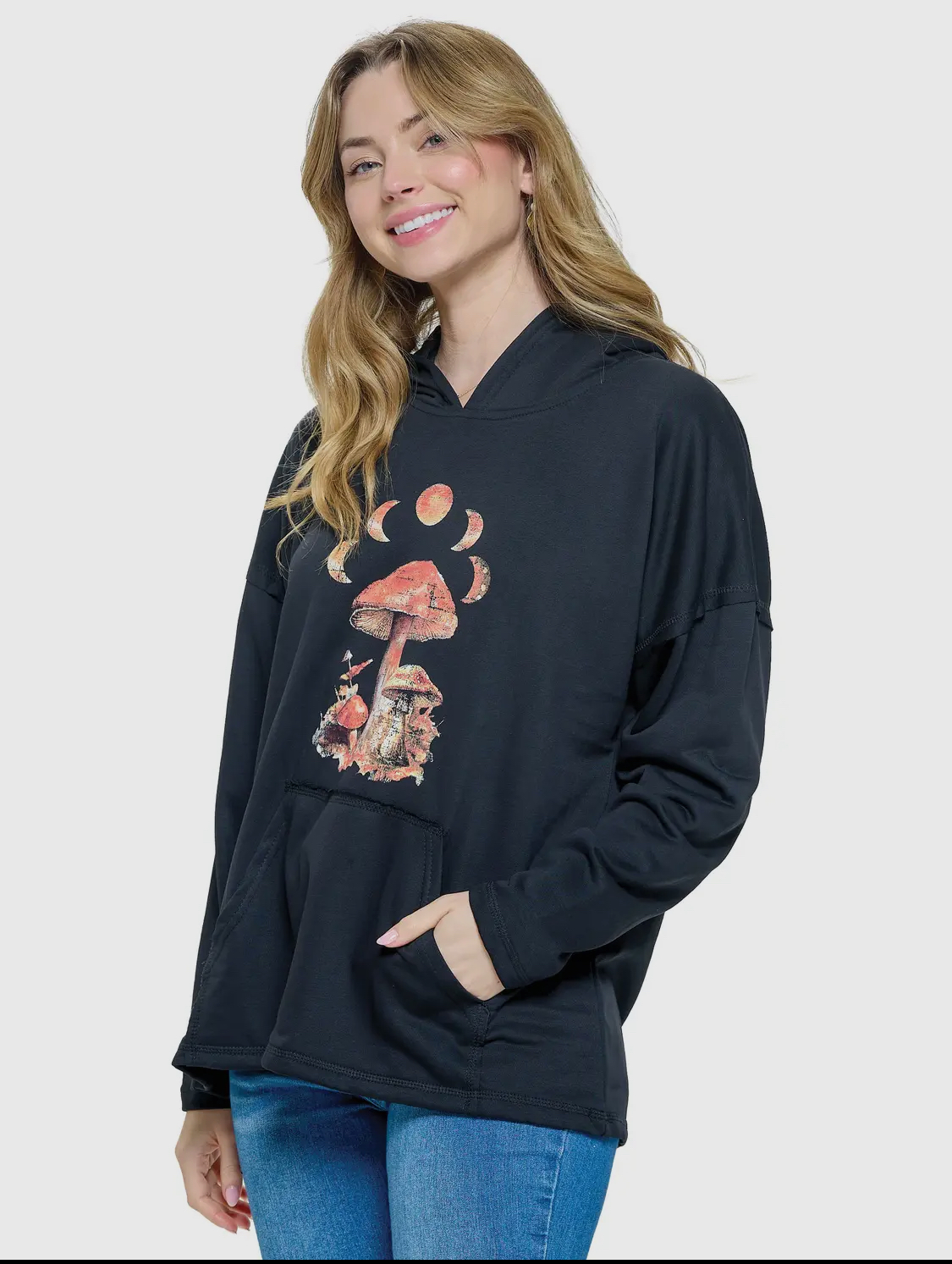 Mushroom Moon Print Hoodie- Black- By Yak & Yeti