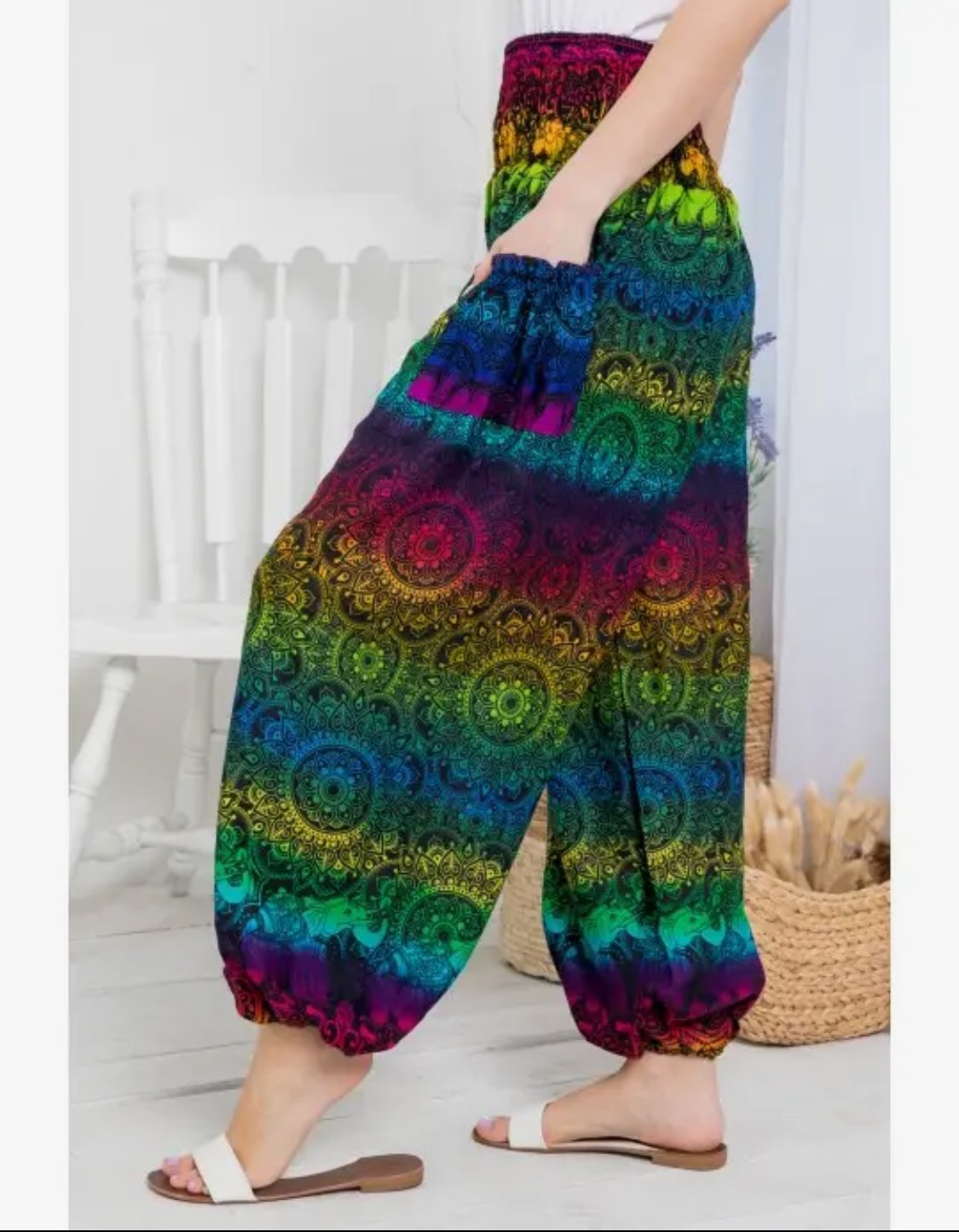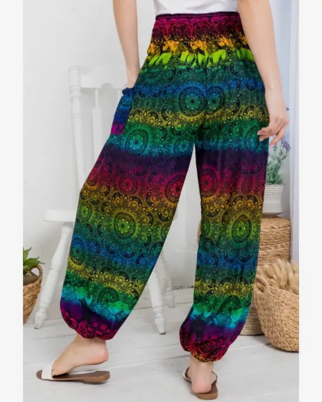 Smoked pants with elastic ankles & side pockets.